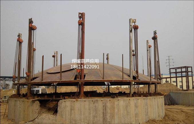 确定焊罐电动葫芦的台数之后,要精确计算和确定吊点的间距,各吊点间距一定要相等且均衡布点。由于施工工艺上要求少开天窗,因此首次吊点要尽可能少,除要求首次吊点的间距一致外,还要考虑以后吊点的均衡设置,以保持各吊点的间距相等,尽可能为焊罐电动葫芦的均载运行创造条件。