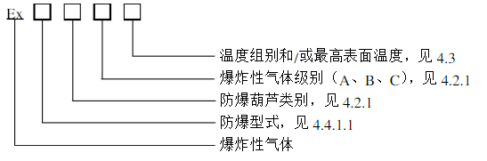 防爆标志应符合GB3836.1或GB12476.1的规定,防爆标志采用下述方式: