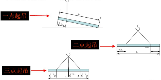 3、长型物件吊点选择:(L为长形物件总长度)。