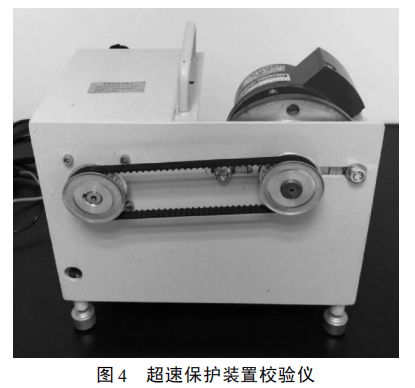 二:目前主流的起重机超速?;ぷ爸枚嗍怯τ糜诰硌锘狡鹕?。各厂家及检测机构开发的超速?;ぷ爸眯Q橐牵际钦攵源酥掷嘈?,做法否是将超速保护装置从起重机上拆下后,装在校验仪上进行速度校验。该方法可以准确测量超速?;ぷ爸玫亩魉俣?,但需要把超速装置从起重机上拆下,然后安装在校验仪上进行测量。这种方法不适用于钢丝绳电动葫芦,钢丝绳电动葫芦的超速?;っ挥邢煊Φ募觳馐侄?。