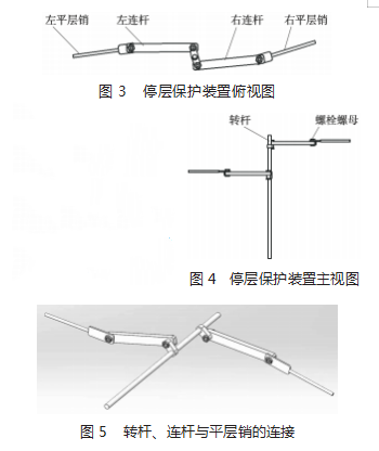经分析,升降机所用停层保护装置为轿厢左、右两 侧的平层销。该平层销采用一套连杆装置,通过转杆的 转动带动左、右两侧的连杆,再由连杆带动两侧的平层销伸出或收回(图 3、图 4)。