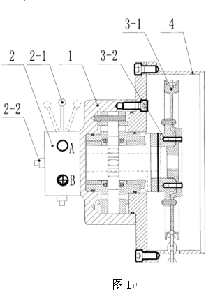 (3) 如图1所示,集成阀块2主要由三位四通换向阀2-1、平衡阀2-2组成,其中2-1的功能是控制非圆轮系液压马达1的旋转方向,平衡阀2-2的功能是保持1-1运行平稳,并通过限制其供液系统的高工作压力来实现对本装置的大输出力进行限定。