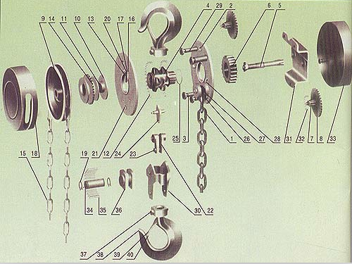 6、? 检查和维修手拉葫芦时应有熟悉其内部构造者进行,禁止不熟悉的人进行维护。