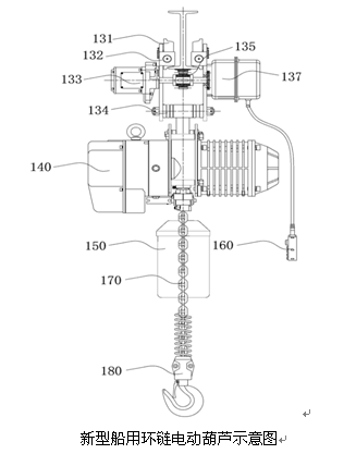 环链电动葫芦取代了原有的钢丝绳卷扬机,具有机身外形美观、体积小、防护等级高、噪音小、安全可靠等特点。但是如果用于船用,现存环链电动葫芦还是存在很多的缺陷。