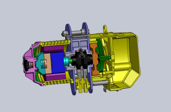 (3)电机装在卷筒里面的电动葫芦,其优点为长度尺寸小,结构紧凑。其主要缺点为电机散热条件差,分组性差,检查、安装、维护电机不便,?供电装置复杂。