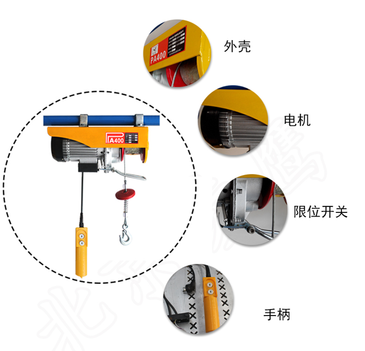 下面,具体介绍一下凌鹰微型电动葫芦的各个配件,以及优势。