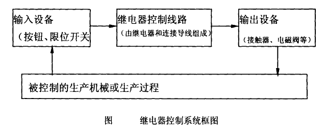 下图中是一个继电器控制系统。由继电器、接触器用导线连接起来以实现控制程序的,因此属于接线程序控制系统,其输入对输出的控制是通过接线程序来实现的,输入设备(按钮、行程开关、限位开关、传感器等)用以向系统送入控制信号。输出设备(接触器、电磁阀等执行元件)用以控制生产机械和生产过程中的各种被控对象(电动机、电炉、电磁阀们等)。
