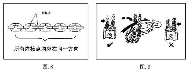 注意:当下吊钩的垂链为双挂数或偶然时,绝对禁止将下吊钩反向垂挂,以避免任何危险。(图9)
