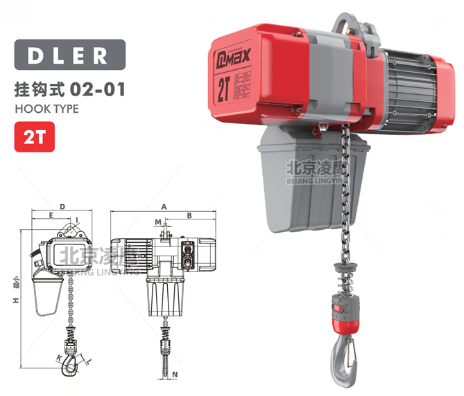 产品名称:2吨单链DLER环链电动葫芦挂钩式