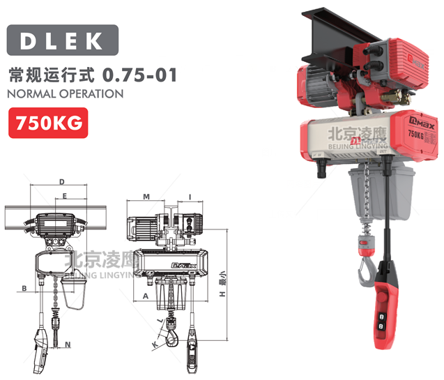 产品名称:0.75吨DLEK环链电动葫芦运行式